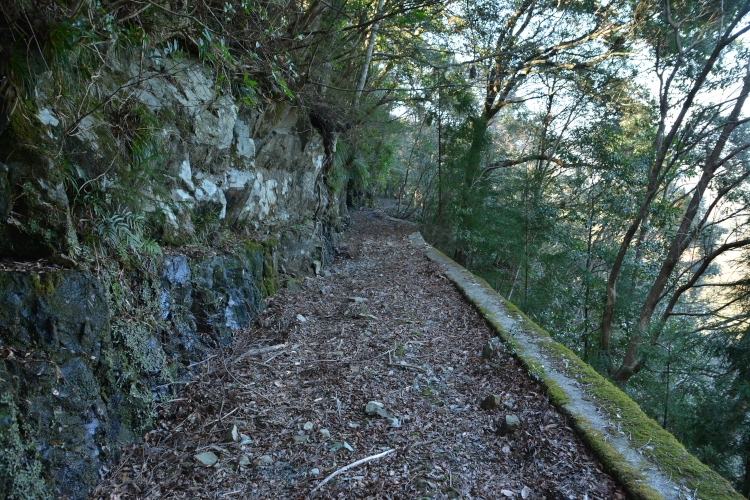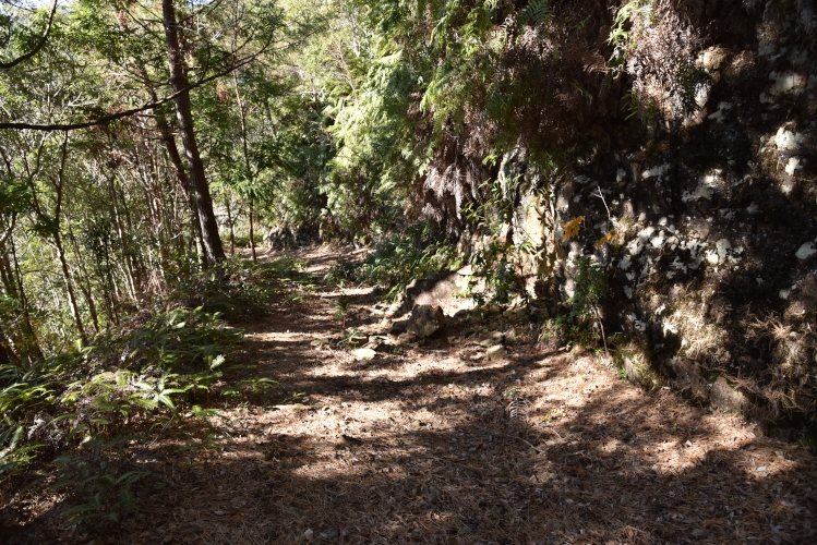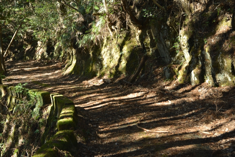 徒歩道の幅員ながらも、石垣が続いています。 |
