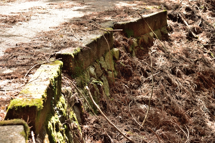 縁石の下には石垣が見えます。 (2025年3月撮影) |