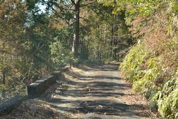 こう見ると車でも進めそうですが、 路肩の崩落もあり、進入はたいへん危険です。 (2019年2月撮影) |