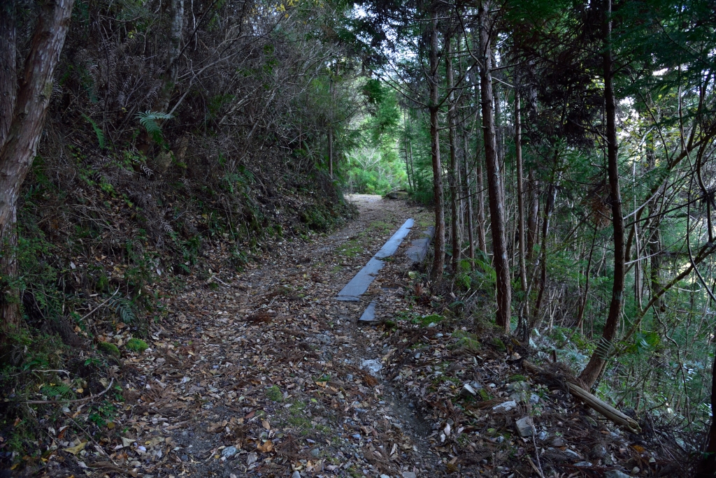 崩壊区間を乗り越えると、幅員が不安定ながらも道が復活しました。 |