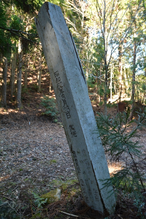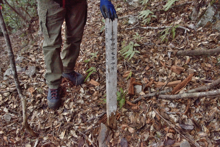 昭和62年3月23日 実施 造林地所有者 西 弥太郎 造林者 那智勝浦町 造林費負担者 森林開発公団 (2019年2月撮影) |