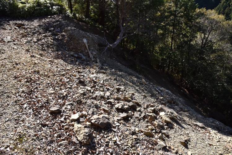 実際にその場に立ってみると、何とか道幅を保った崩れ方をしています。 |