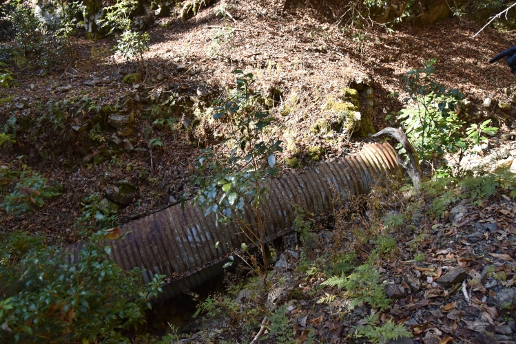 渡って振り帰ると、コンクリートヒューム管がありました。 ここも出水で路盤が削られてしまったようです。 |