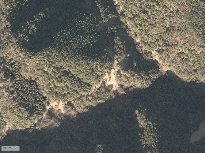 2013年の空中写真でも、この崩落が確認できました。 少なくとも10年以上、おそらく20年近くこの状態ではないでしょうか。 |