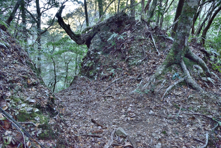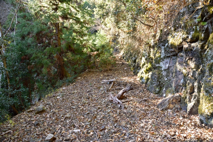 が、GPSを確認すると、辿るべき道から外れてしまっているようで、 切り通しまで戻りました。 |