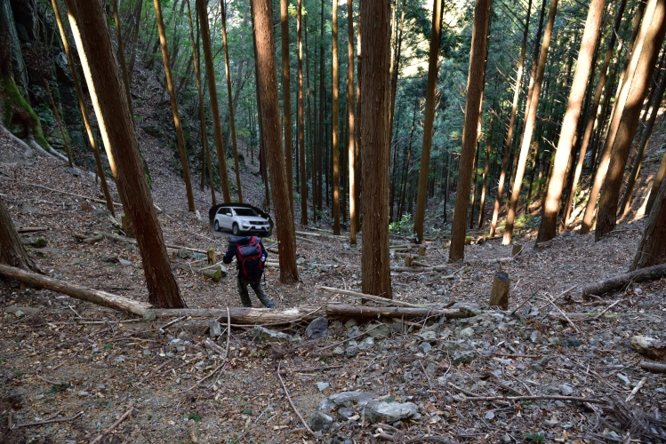 路面は安定していますが、道路というよりは林業の作業道として整備されているようです。 |