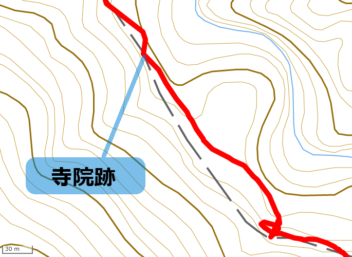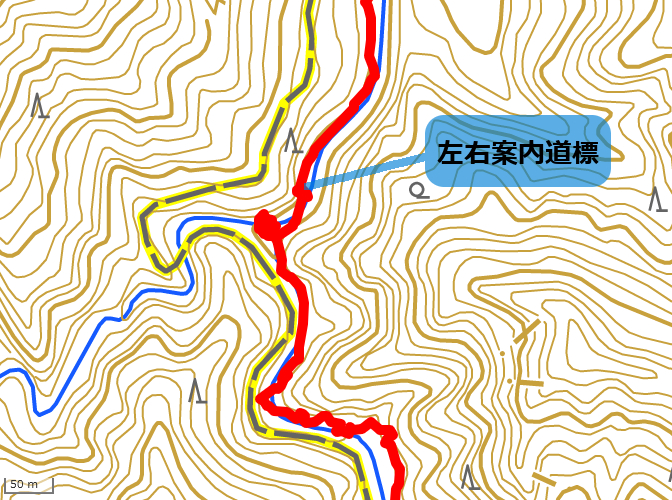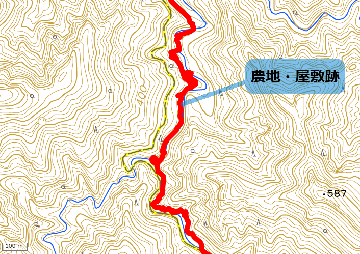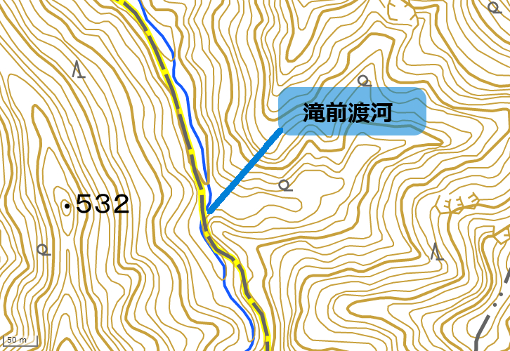 地図では、合流する支流沿いに進んだ後、渡河していますが、
