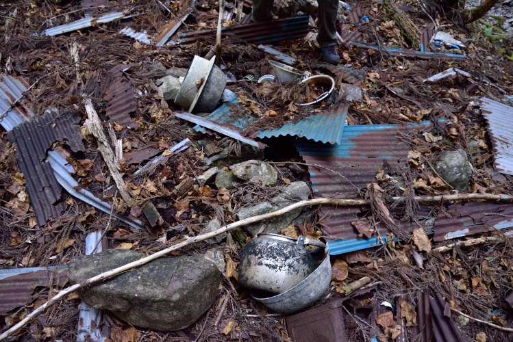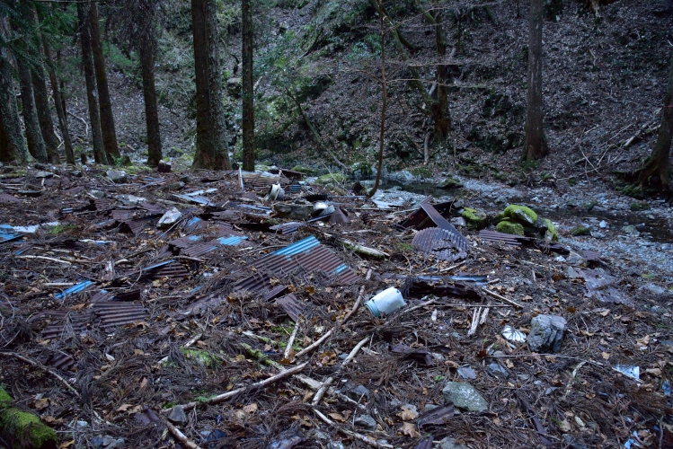 やかんや羽釜が転がっています。 北ノ川が無住となった後、林業従事者が使用していた作業小屋でしょうか。 |