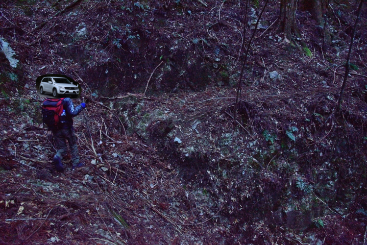 道があったのか、ただの斜面に迷い込んでしまったか、判断できません。 |