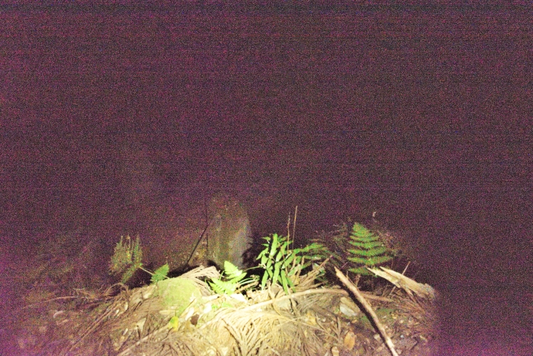 …それから20分近く、真っ暗な中、小さなLEDライトの明かりのみで、GPS上の道の辺りを探しますが、 道どころか集落跡もなく、ただの斜面しかありません。 小原川橋まで50m程度のはずなのに、辿り着けない… |